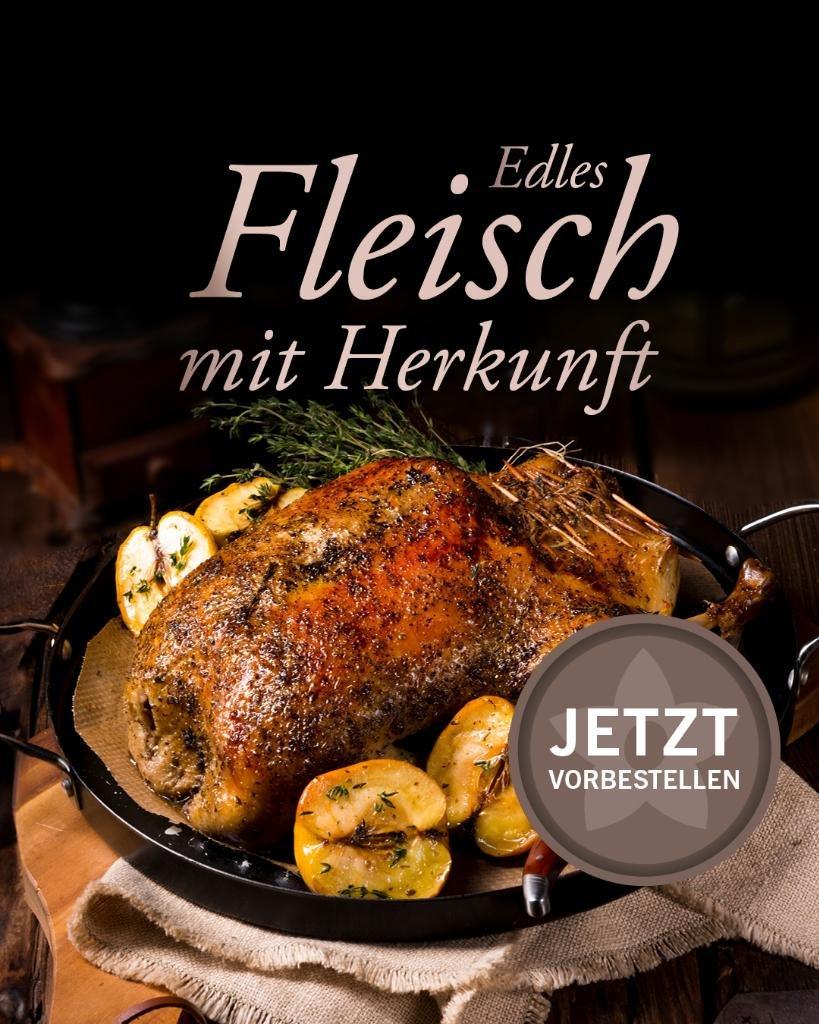 Ab jetzt könnt Ihr wieder euren Weihnachtsbraten oder eine vegane Alternative bei uns bis einschließlich 05.12.25 vorbestellen.