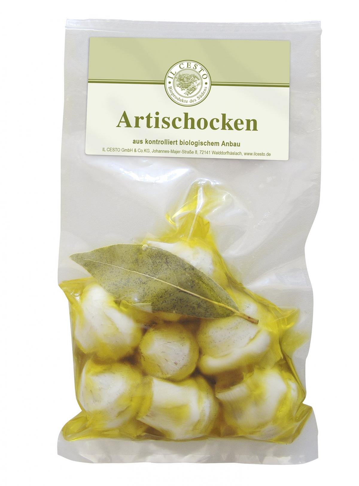 Artischocken* 81,1%, Rapsöl* 18% (kaltgepresst), Meersalz, Lorbeer*, Säureregulator: Zitronensäure, Antioxidationsmittel: Ascorbinsäure