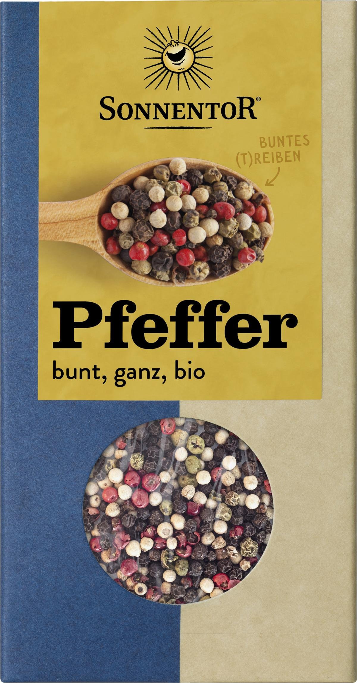 Mischung aus schwarzem, grünem, weißem und rosa Pfeffer. Ideal zu Verwenden in der Gewürzmühle. Vielfältig einsetzbar. Zum Beispiel für Ei-Gerichte, Fisch, Geflügel oder Pasta-Gerichte.
