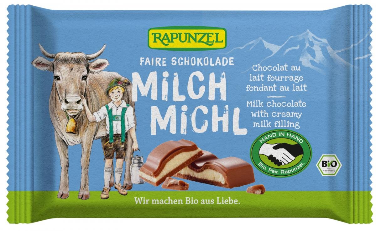 Vollmilchschokolade mit feiner Milchcreme-Füllung. Nicht nur für Kinder ein Hit - fair gehandelt von Rapunzel HAND IN HAND-Partnern. Das intensive Conchieren ist neben den wertvollen Rohstoffen das eigentliche Geheimnis des wahren Schokoladengenusses. Durch die Kunst des Conchierens entwickelt sich der anfänglich noch verborgene Reichtum an kakaoeigenen Aromen Stufe um Stufe bis zur vollen Entfaltung. Gleichzeitig entsteht vollkommene Feinheit und der unvergleichlich zarte Schmelz.