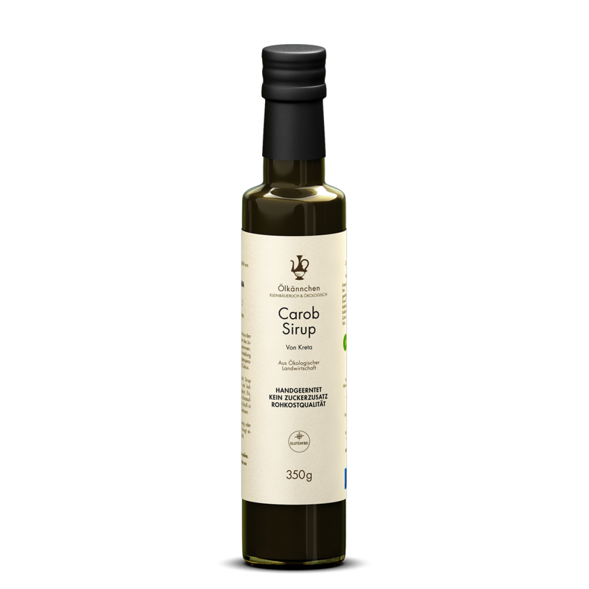 Die Insel Kreta beheimatet eine Vielzahl der Bäume, die sehr widerstandsfähig sind und auch mit wenig Wasser auskommen. Beinahe jede Familie auf Kreta stellt Carob Sirup her. Verwendet wird dieser zum Backen, gerne mit Tahin als Brotaufstrich, in Salatsaucen, mit Eis oder auch als süße Komponente zum Kochen. Geschmacklich erinnert Carob Sirup etwas an Zuckerrübensirup mit einer leckeren Karamellnote.